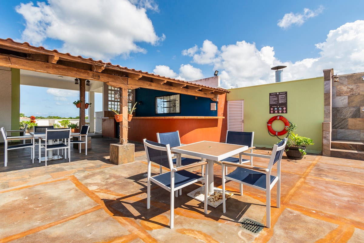 Vores bolig tilbyder alt, hvad du har brug for til et afslappende ophold i Cozumel. Nyd et smukt indrettet værelse, en skyggefuld og hyggelig baghave og vores rummelige tagterrasse med en lille dykkepøl. Vi er tæt på supermarkeder, butikker og restauranter. Vi har bygget vores drømmebolig, og vi er meget glade for at dele den med dig.
