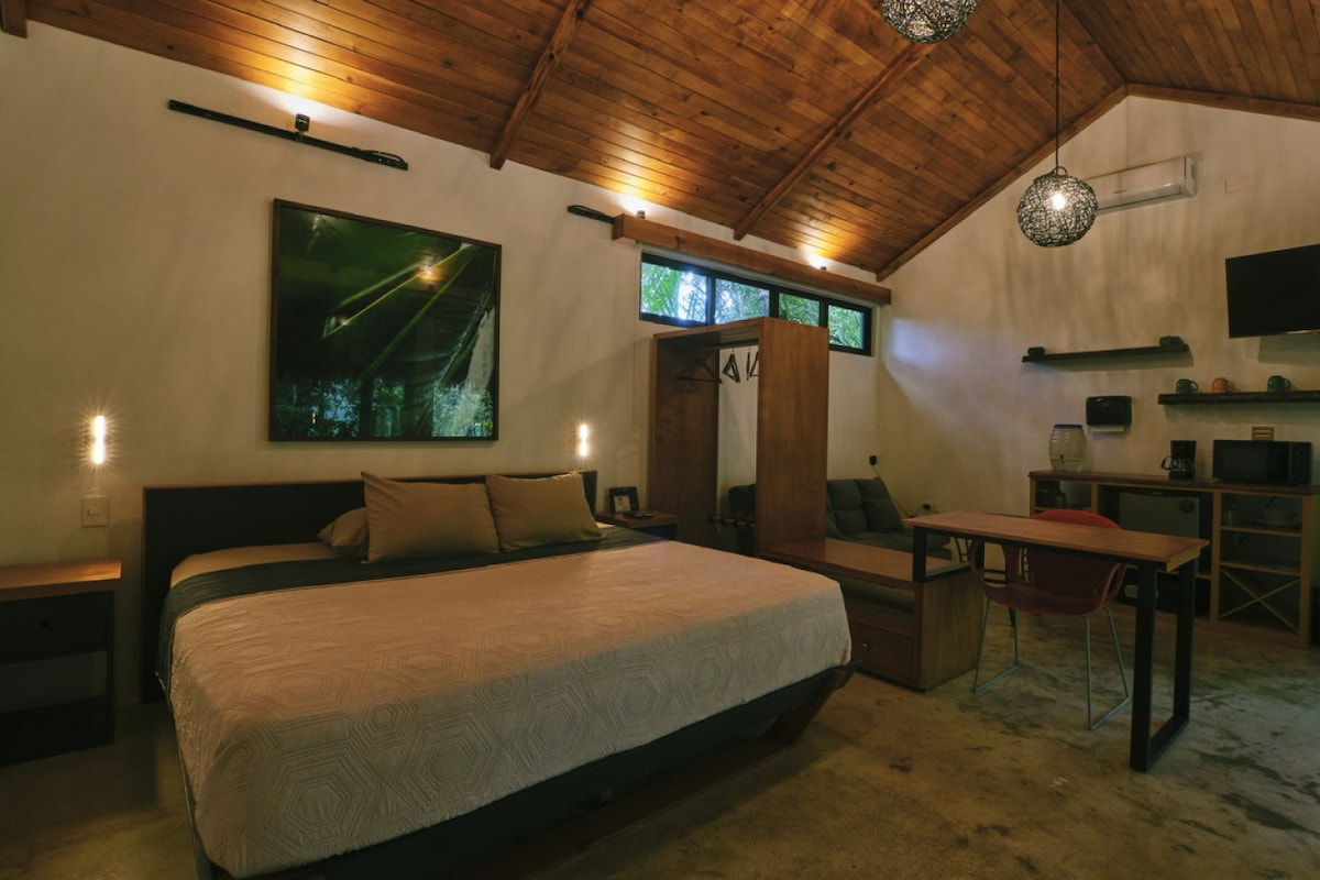 Perfekt til strand- og naturelskere, der leder efter en rolig udflugt! En af de bedste private beliggenheder på øen med direkte adgang til en sandstrand, hvor du kan dyrke vandsport eller bare slappe af på kysten. Kun 5 minutters kørsel til Cozumels centrum. Denne nyrenoverede suite har alt, hvad du behøver for et behageligt ophold, herunder: en åben udendørs terrasse, et stort studie, privat badeværelse, aircondition, smart-tv, wi-fi og et tekøkken fyldt med nye apparater.
