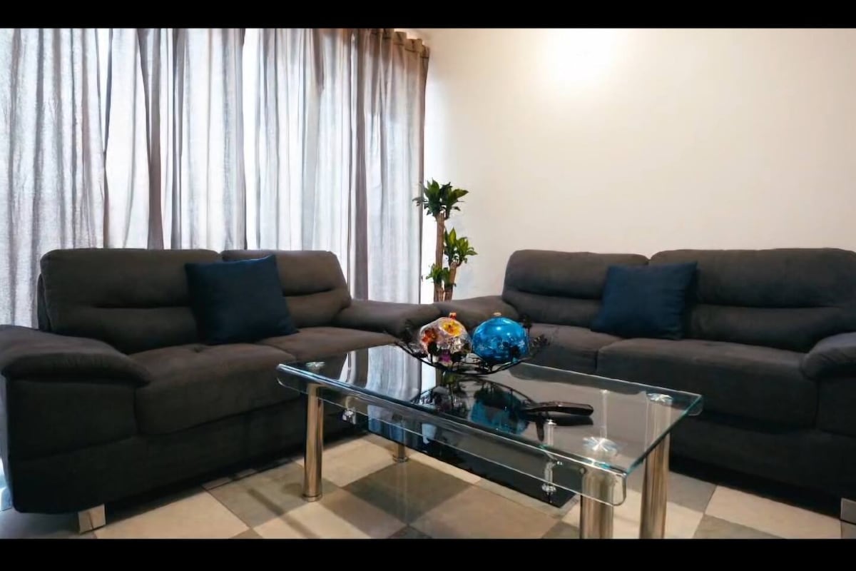 Boligen ligger på første sal, har et soveværelse med to dobbeltsenge ,strygejern, skærm,en kommode en lille kommode et kontor,som dekoration et oliemaleri og en håndlavet lampe. Det har også en plads, der bruges som spisestue og køkken. Køkkenet har mikrobølgeovn, køleskab, kaffemaskine,blender, grill og køkkenredskaber. Et vindue, der fører til gaden og et komplet bad