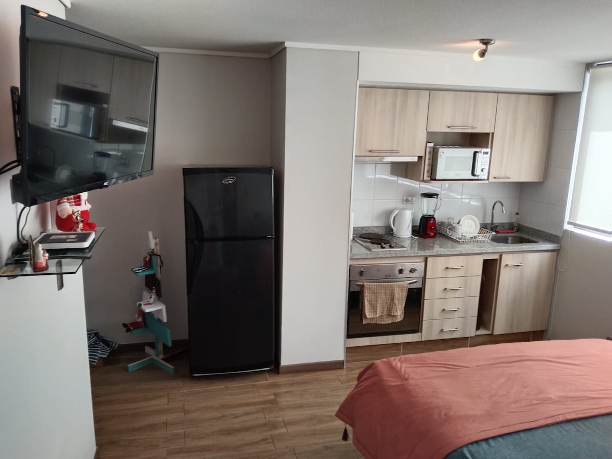 Renoveret Home Studio. Prisbelønnet af Airbnb! Beliggende i gåafstand til alt og tæt på Concepción centrum. Stilfuldt møbleret, udstyret til at 1 eller 2 personer kan føle sig godt tilpas og føle sig "hjemme". Dobbeltseng, kabel-tv og WiFi, badeværelse og udstyret køkken. Adgang til vaskeri. Vi taler engelsk! Vi hjælper dig gerne med dit ophold i vores by!