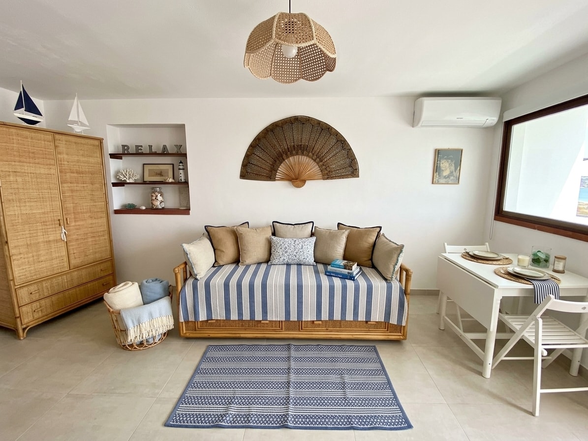 Nyd et ophold i denne rummelige, nyrenoverede lejlighed med udsigt over det krystalklare vand i Det Joniske Hav. Med sine tre elegante soveværelser og tre komplette badeværelser (plus et fjerde med en vaskemaskine) er det ideelt for familier eller grupper, der søger komfort og stil. Den lyse stue åbner ud til en balkon, hvor du kan slappe af, mens du beundrer den spektakulære havudsigt. Det ligger få skridt fra stranden og tilbyder den perfekte blanding af afslapning og bekvemmelighed.
