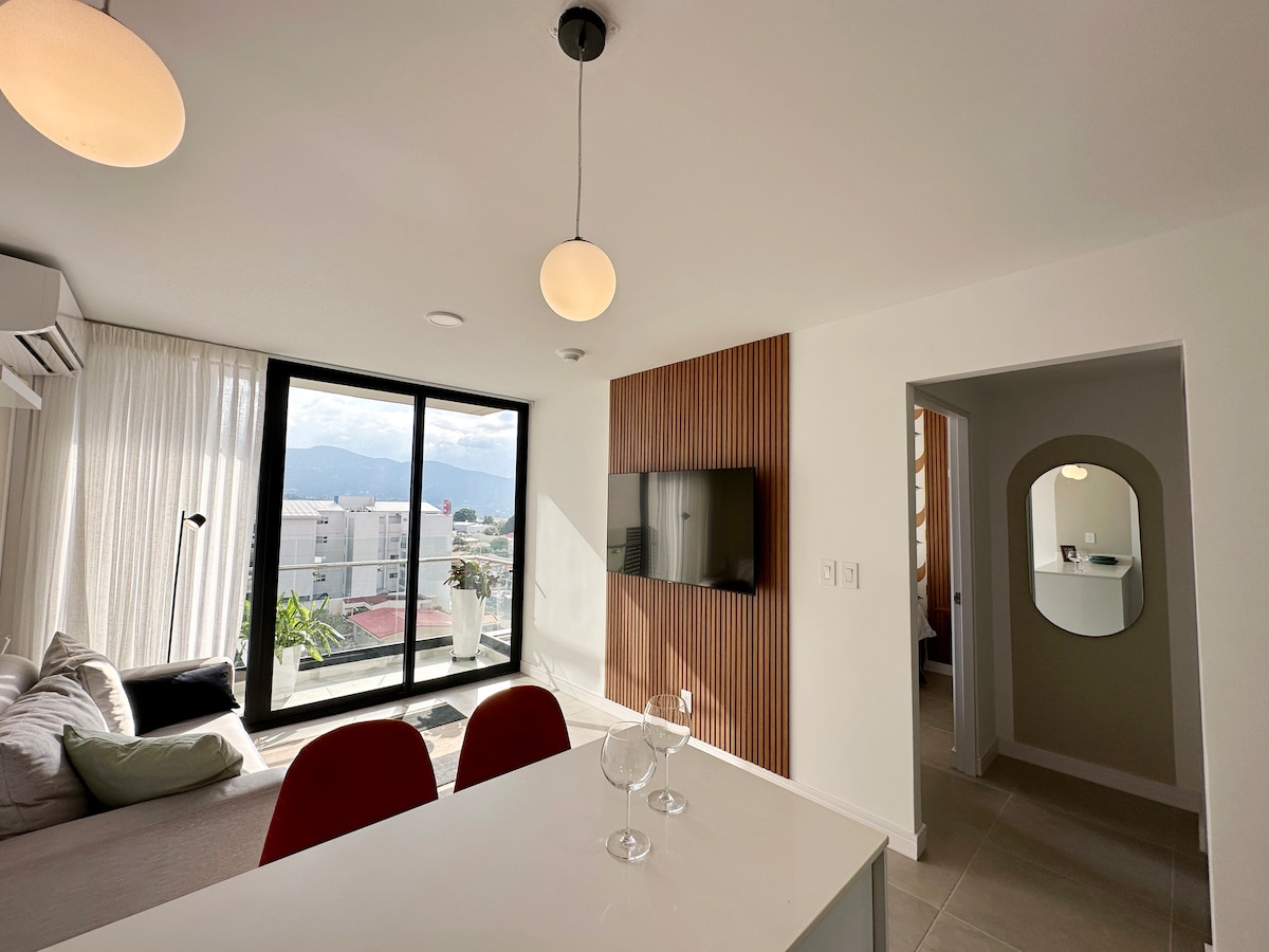 Professionelt indrettet lejlighed beliggende fem minutter væk fra Escazú, en livlig by fyldt med restauranter, Multiplaza Mall og bedste private hospital (CIMA)0,30 minutters kørsel fra lufthavnen. Døgnåben sikkerhed. Den ligger på fjerde sal med en fantastisk udsigt over San Jose's Skyline og smukke bjerge. Fuldt udstyret køkken, smart-tv, aircondition. Resortkomplekset omfatter pool, fitnessrum, lounge, kæledyrspark, 2 dedikerede parkeringspladser.