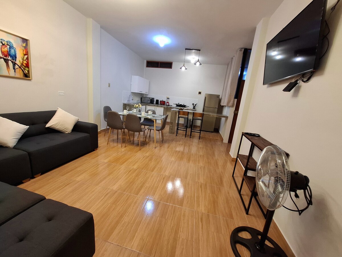 🌿 Velkommen til Adenium Apartament, dit ideelle tilflugtssted, hvor du kan slappe af og nyde Tarapoto. Vores lejlighed tilbyder en behagelig, stille og funktionel oplevelse, der er perfekt til par, forretningsrejsende eller turister. ✔️ Aircondition ✔️ Hurtig og stabil wi-fi ✔️ Et udstyret køkken Nem og sikker ✔️ indtjekning Vi ligger tæt på restauranter, caféer, butikker og seværdigheder. Derudover giver vi dig anbefalinger til lokale ture Adenium, føl dig hjemme 🏠