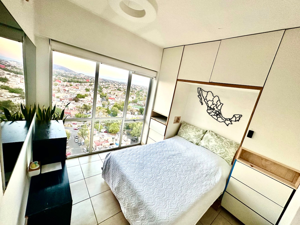 Lejlighed på 18. etage, 20-20 minutter fra Polanco, Reforma og centrum. Nordisk minimalistisk koncept (hvor lys, luft og hvid farve dominerer). Sikkerhed, 100 megas internet, balkon, udsigt, bøger, brætspil, kvalitet i audio-video og belysning, puder og madrasser af Memory foam og alle tjenester! Brug den til forretningsrejser, familie, par, til at holde kurser eller som fotostudie (shootings). Der er INGEN parkeringsplads.