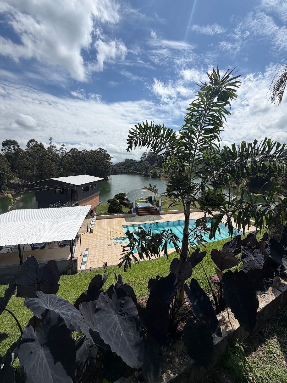De vil være omgivet af en spektakulær udsigt over Guatapé-dæmningen og den imponerende Piedra del Peñol. Vores pool og jacuzzi er perfekte til afslapning og skaber en magisk atmosfære, som du kan dele udendørs med en god grillmad i vores grillområde og skabe uforglemmelige minder. Via 80 % belagt og 20 % ikke belagt Bemærk: Vandet i jacuzzien er kun NATURLIGT vand, som nogle gange kan blive grumset, men vi leverer det frisk skiftet og rent