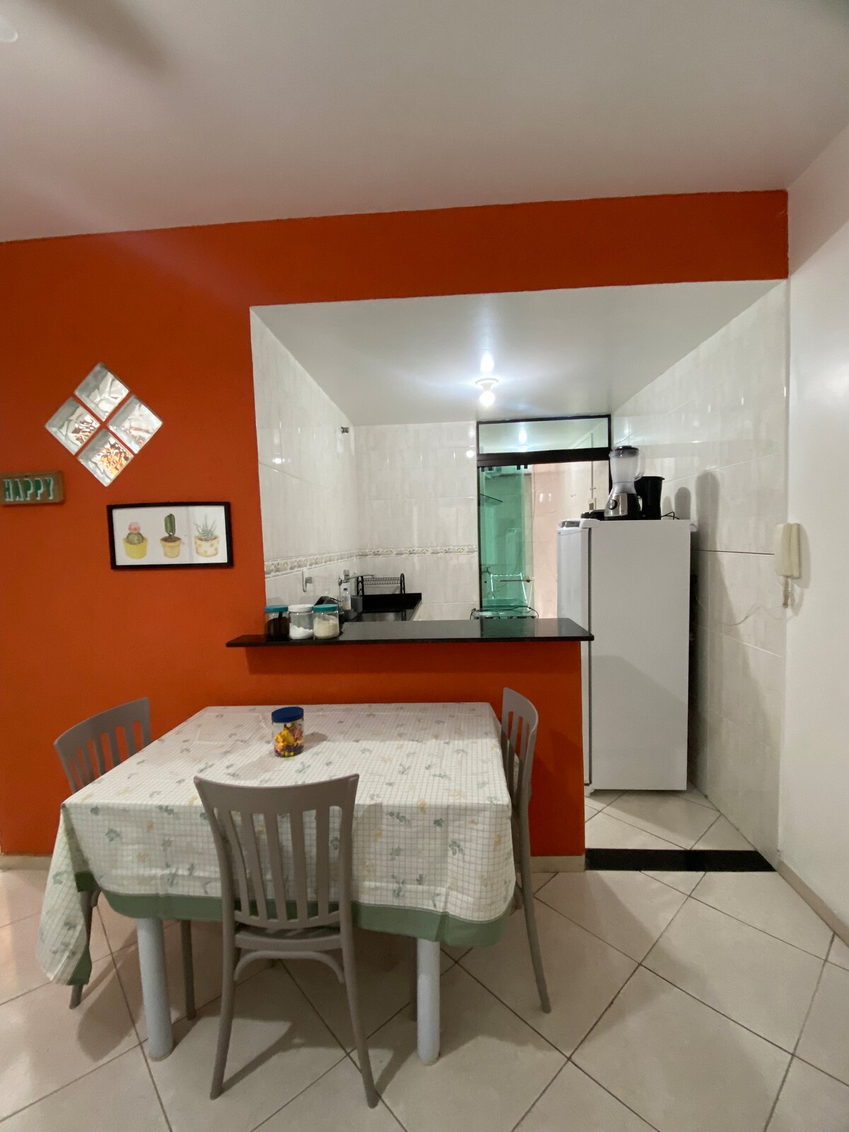 Smuk møbleret lejlighed på 80m² beliggende i Jardim Olinda, Cabo Frio-RJ. I nærheden af indkøbscentret Park Lagos, markeder, bageri, slagtere, universitet, busstoppested osv. Bestående af: -> 2 soveværelser (1 suite) -> Badeværelse -> Køkken med åbent koncept -> Serviceområde -> Stue -> Altan -> Overdækket parkering -> Wi-Fi Oi Fiber 500mb -> Tv -> Køleskab -> Ovn -> Indbygget kogeplade -> 3 bordventilatorer -> Stikkontaktspænding: 110v -> Samtaleanlæg