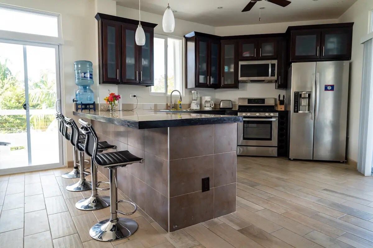Vores stilfulde lejligheder ligger i et af de sikreste og mest eftertragtede kvarterer i Belize City – kun 15 minutters kørsel fra den internationale lufthavn og 10 minutter fra centrum. Området blander lokal charme og bekvemmelighed med caféer, restauranter, bagerier og butikker i nærheden (se detaljerne nedenfor). Bo hos os, og udforsk Belizes største attraktioner: Besøg mayaruiner, prøv grottetubing eller svævebanen, snorkl ved revet, eller tag på en dagstur til en af øerne.