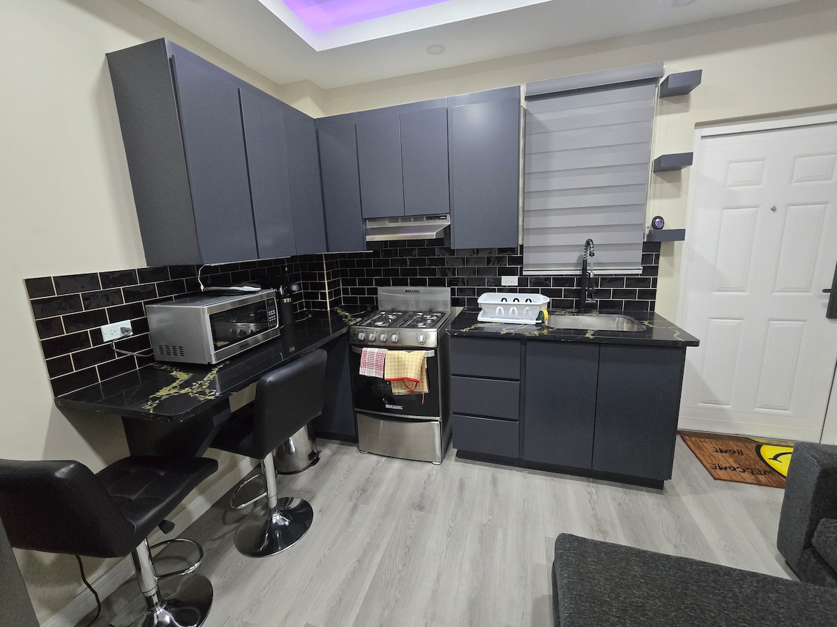 Elegant 1-værelses feriebolig | Moderne bekvemmeligheder og førsteklasses beliggenhed Slap af i denne nybyggede, fuldt udstyrede lejlighed med 1 soveværelse, der har et elegant design, højhastigheds-Wi-Fi, et komplet køkken og blødt sengetøj – perfekt til forretnings- eller fritidsophold. Perfekt beliggenhed få minutter fra indkøbscentre, dagligvarebutikker, tankstationer og lufthavnen med hurtig adgang til motorvejen. Kun 20 minutter fra Port of Spain.