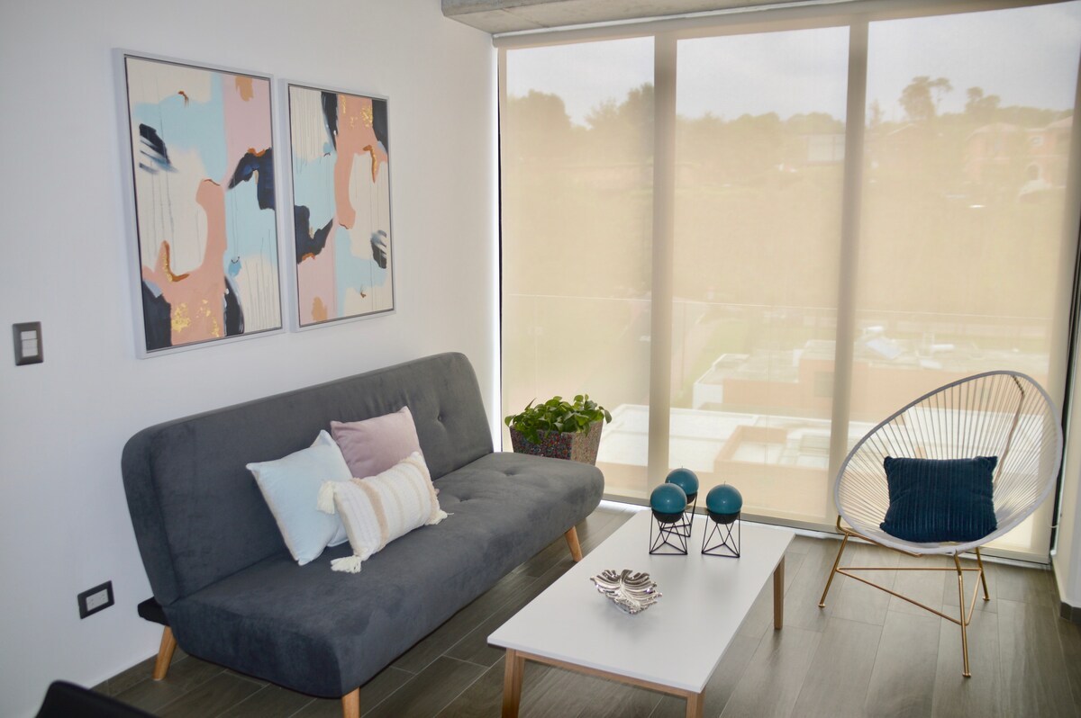 Vores dejlige lejlighed ligger i et af de mest eksklusive områder i byen: Cayalá, Zona 16 (8 min. gang). Vi er tæt på forskellige gastronomiske oplevelser, turistattraktioner, shopping, supermarkeder, den amerikanske ambassade, og vi er kun 15 minutter væk fra byens centrum (i bil). Boligen har et fuldt udstyret køkken, en sovesofa, højhastigheds-Wi-Fi, et arbejdsområde og et stort walk-in-closet. Vi ser frem til dit besøg!