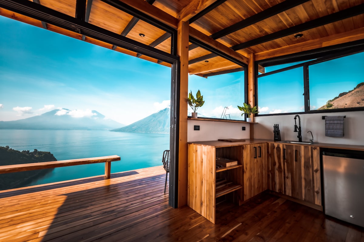 Meget unikt og moderne luksushus oppe i det guatemalanske højland med følelsen af at svæve op i himlen (1700 m) – Har uhindret Starlink-forbindelse med 24 timers uafbrudt elektricitet (lithium/sol) – Alle vinduer kan åbnes helt for at byde på den betagende udsigt over 5 vulkaner og "uendelighedssøen" i det evigt skiftende "maleri" - Filtreret kildevand på hanen - Spabad på badeværelset, hvor du kan lukke eller åbne døren - 12 m2 udkragende hængekøje dæk-net til stjernekiggeri og afslapning
