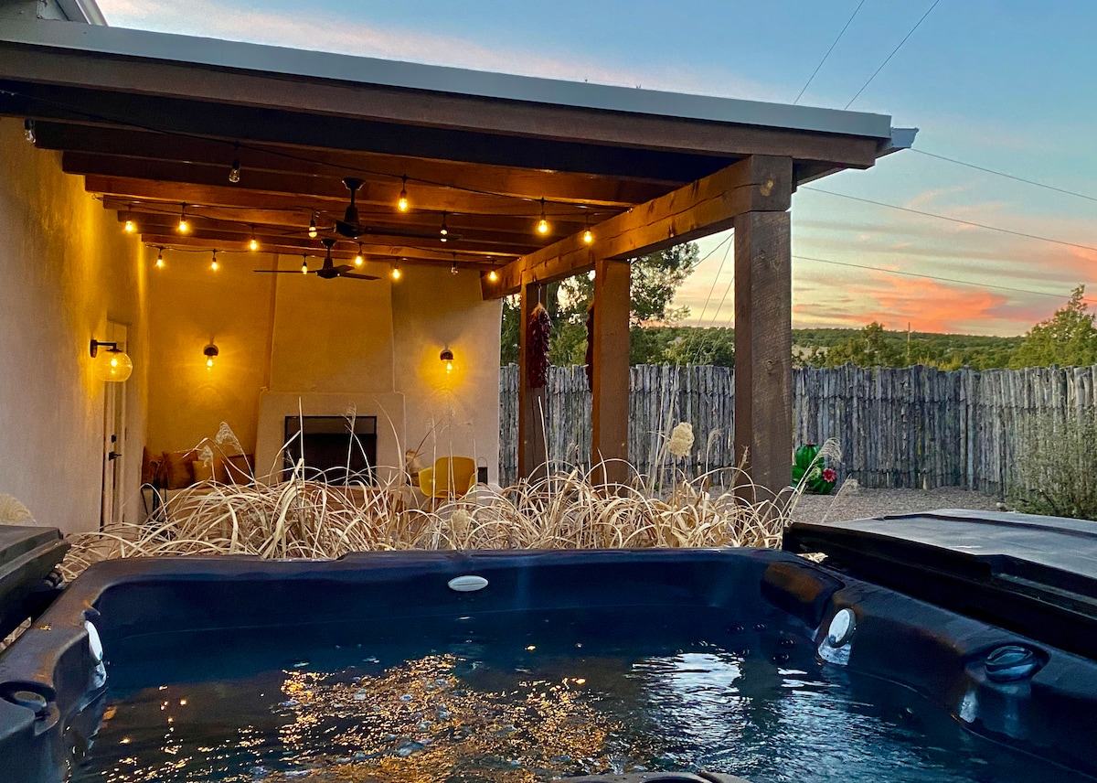 🎉 Send mig en besked, så du ikke går glip af tilbud🎉 ✨Du får 🩷 Casa de Sueños✨ 🌄 Betagende udsigt over bjergene 🛁 Spabad 🌿 Privat beliggenhed 🔥 Kiva-pejs Vægmalerier af🎨 lokale kunstnere 🏺 Rum med tyrkisk tema 🎮 Spillelokale 🍽 Fuldt udstyret vintagekøkken ***ATTRAKTIONER I NÆRHEDEN*** -🥾 Flere vandreområder (ca.10 minutter) -☕Restauranter og caféer (~10 minutter) - 🌆Santa Fe Plaza (~15 minutter) -🎨Museum of International Folk Art (ca.10 minutter) - 🖼️ Canyon Road Galleries (ca. 15 minutter) – ⛷️Ski Santa Fe Mountain Top (~40 minutter)