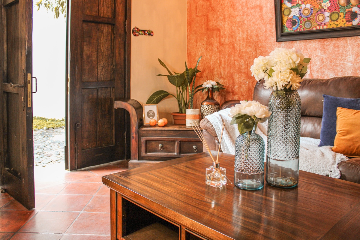 Vores ejendom har i alt 10 vidunderlige boliger i boho-stil, gåafstand til alle de vigtigste steder af interesse i Antigua Guatemala. Omgivelserne giver en hyggelig og afslappende stemning med alle de faciliteter, der kræves for et behageligt ophold. Boligen har masser af udendørs opholdsområder at vælge imellem. Vi tilbyder flere muligheder for sengelayout, fra 2 dobbeltsenge eller queensize-senge til 1 kingsize-seng. Flere boliger kan bookes sammen. Spørg om tilgængelighed.