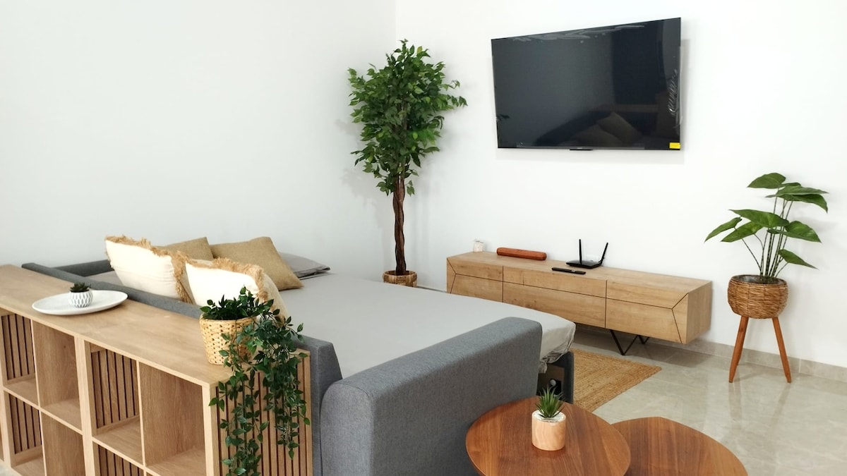 Denne lejlighed tilbyder den perfekte blanding af enkelhed og komfort, beliggende i en uovertruffen beliggenhed lige ved stranden med en betagende havudsigt og kun et stenkast fra gågaden. Du kan nyde havets skønhed fra det øjeblik, du vågner. Uanset om du leder efter en afslappende dag ved havet eller en livlig aften i byen, tilbyder denne lejlighed en unik og ideel ramme for dit ophold.