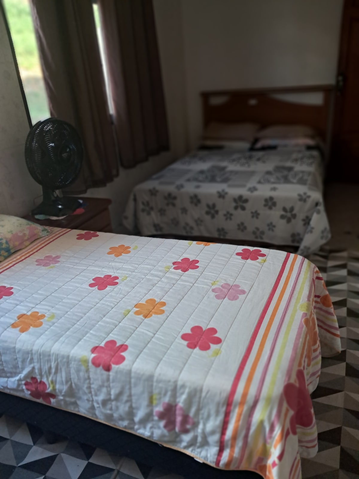 Den ligger 900 meter fra Mello Leitão-museet, 1000 meter (10 minutters gang) fra Augusto Ruschi-pladsen (have i centrum). Lejligheden ligger på første sal, der er 3 soveværelser, hvert værelse har aircondition og en dobbeltseng i queen størrelse. Der er 1 ekstra enkelmadras (komfortabel, springmadras), der passer i soveværelserne og/eller stuen. Vi har Wi-Fi, 65 tommer smart-tv i stuen og en overdækket parkeringsplads. I nærheden af supermarked, bageri og apotek (5 min. gang)