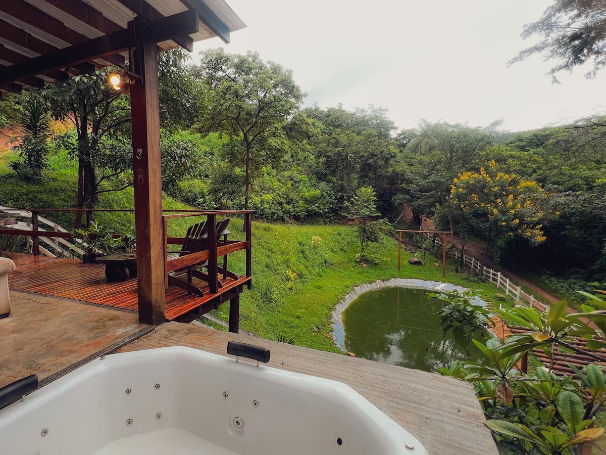 Oplev charmen ved Esmeralda Chalet i Lapinha da Serra! Dette charmerende og selvstændige tilflugtssted tilbyder en unik oplevelse med sin private naturlige sø, som kun chalets gæster har adgang til. Perfekt til et par, der elsker naturen! Chaleten har queensize-dobbeltseng, udstyret køkken, privat grønt område, udendørs bruser, hængekøjer og grill. Slap af, afbryd forbindelsen, og lad dig omslutte dig af magien i dette naturparadis. Kom og lev uforglemmelige øjeblikke med fred i krystalklart vand.