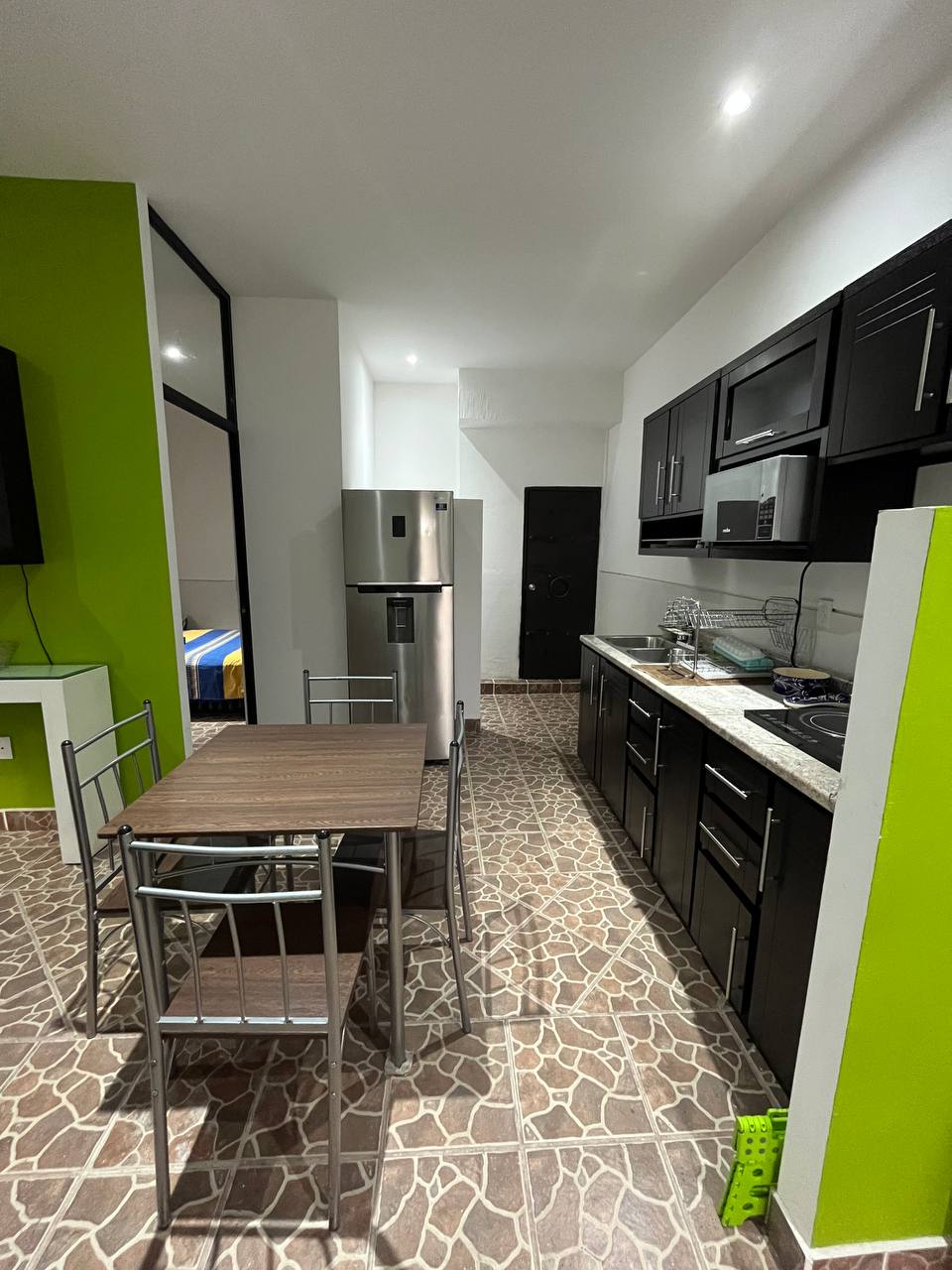 Bolig, der er dedikeret specielt til din komfort og privatliv. Denne minilejlighed har alt, hvad du skal bruge for at hvile. Der er et komplet køkken med køleskab og mikrobølgeovn samt basisredskaber til madlavning. FIBERINTERNETOPTICA. Der er skrivebord til arbejde, komplet skab og sengetøj.