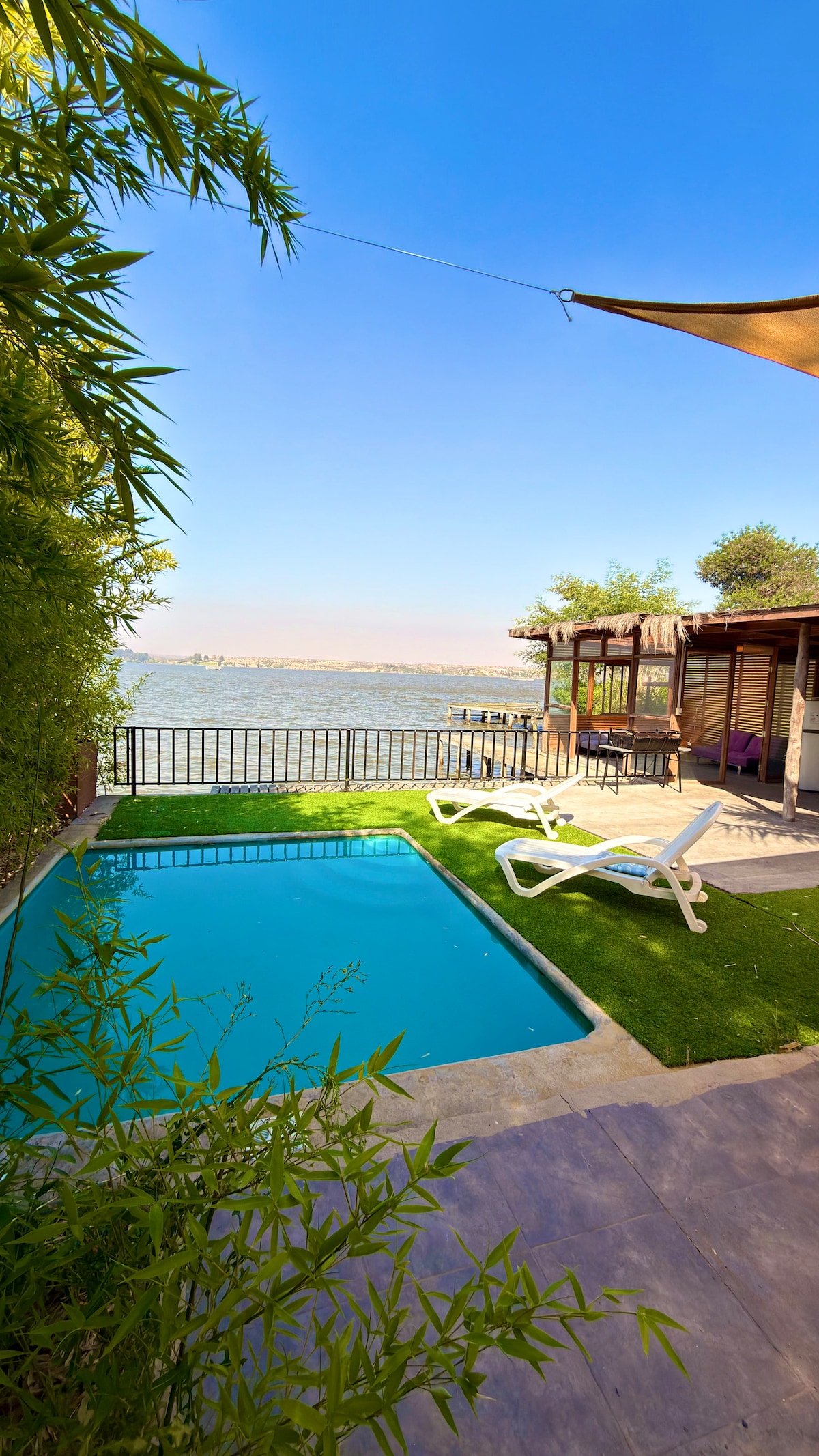 Quincho orilla de lago con carpa tipo Glamping La casa cuenta con una carpa con una cama de dos plazas Full equipada en la cocina Refrigerador Microondas Hervidor Loza Vasos Ollas Todo lo básico necesario para una estadía cómoda Baño privado con agua caliente Piscina privada Orilla de lago Sobre los dos integrantes deben llevar carpas El quincho cuenta con buena capacidad para 3 carpas más