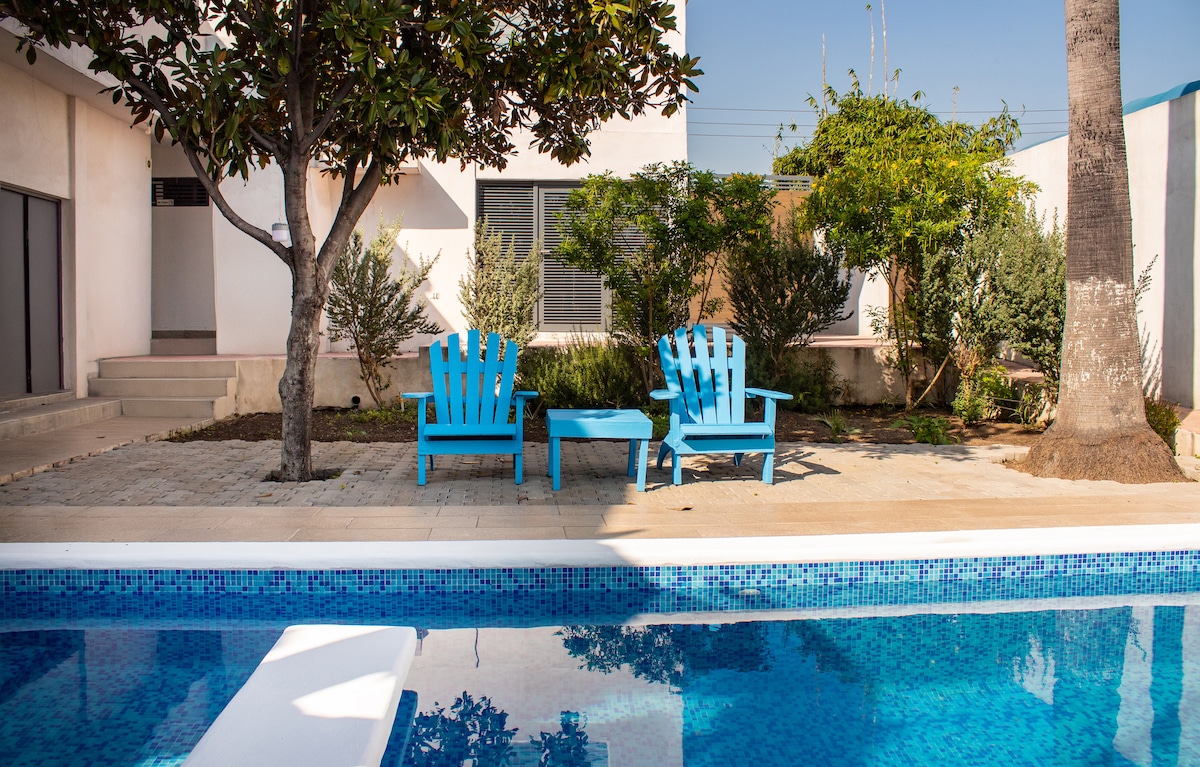 Quinta Macarena, nyd swimmingpool, egetræer og sø