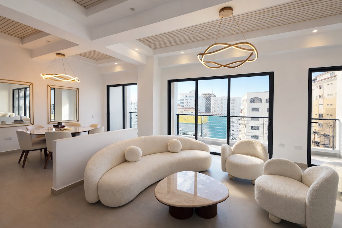 Moderne, rolig og centralt beliggende lejlighed i Piantini 📍✨ Nyd et fuldt udstyret ophold i Santo Domingos mest eksklusive område. Inkluderer hurtig WiFi, aircondition, smart-tv med Netflix, komfur, kaffemaskine, køleskab, køkkengrej, service, smartlås, elevator, røgalarm og sikkerhed døgnet rundt. 🚗 Privat parkering og kun 1 min fra Supermercado Nacional og Plaza Central. Omgivet af top-restauranter, caféer og pubber i hjertet af Piantini.