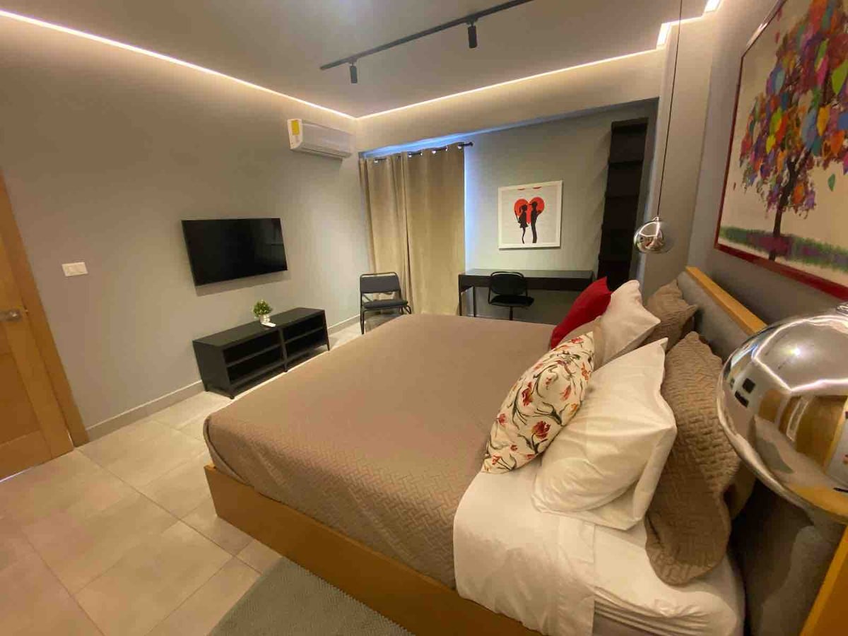 Jeg inviterer dig til at fordybe dig i charmen og komforten ved denne hyggelige bolig i hjertet af Santo Domingo, få skridt fra de vigtigste indkøbscentre og restauranter. Her vil du nyde en unik og mindeværdig værtsoplevelse. Derudover er din sikkerhed vores prioritet, og døgnåben overvågning og personale i lobbyen er altid til rådighed. Som din Airbnb-vært ønsker jeg at gøre dit besøg uforglemmeligt og fyldt med faciliteter. Velkommen til dit hjem.