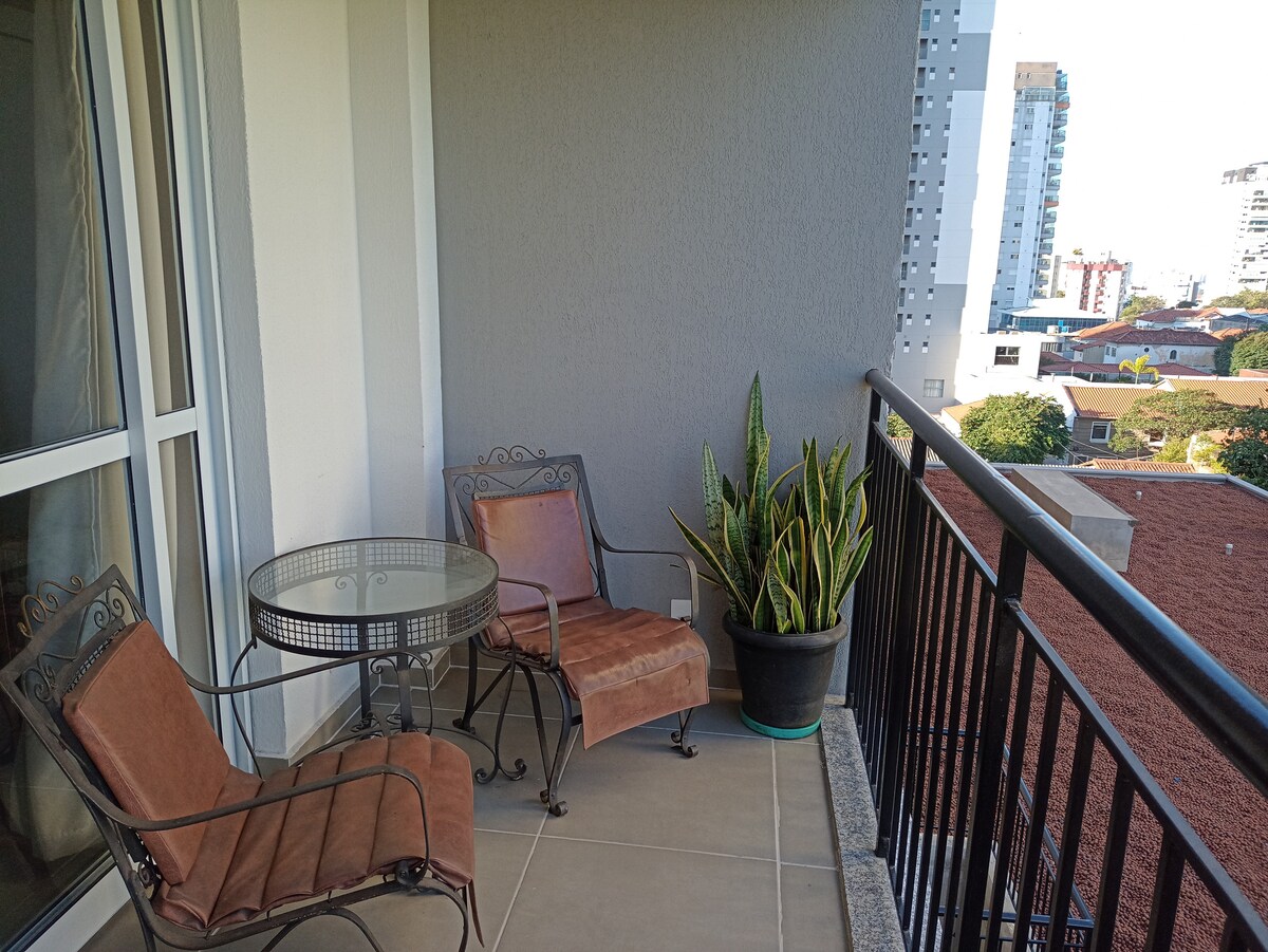 Flat duplex ligger 5 minutters gang fra Ibirapuera-parken og 10 minutters gang fra Faria Lima Avenue. Der er daglig rengøring (mandag til lørdag) og 1 parkeringsplads i garagen. Det har en fantastisk bygning i lejligheden med swimmingpool, sauna, fitnesscenter, fitnesscenter, vaskerum og hjemmekontor. Lejlighed udstyret med aircondition, wi-fi, sengesæt, håndklæder, hotelkit (shampoo og sæbe) og komplet køkken.