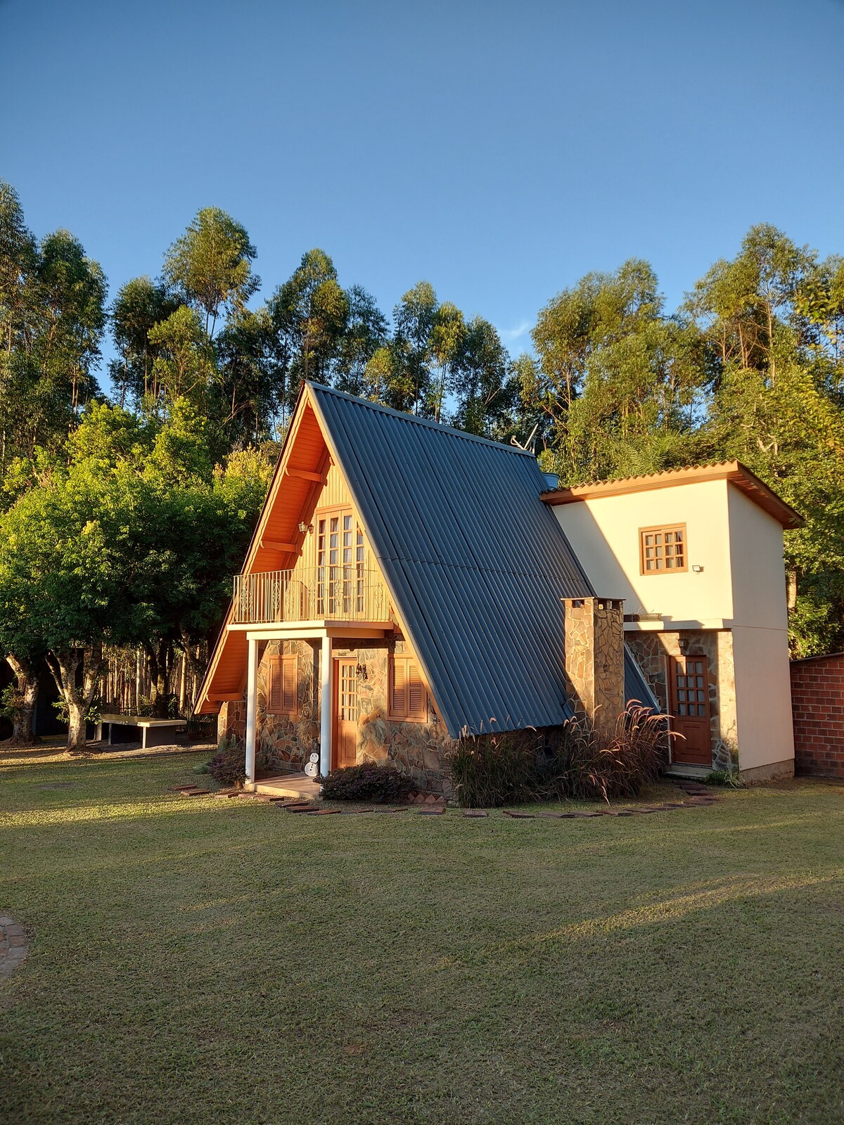 Komplet plads 40 minutter fra Poa, swimmingpool, kiosk, pejs, picnic, plads til lual. Interaktion med dyr og have med frugt og indfødte træer. Hængekøje, gynge og masser af plads til at have det sjovt, nyde livet på landet og nyde en lækker gaucho-grill. Om natten giver den stjernefyldte himmel stedet et romantisk præg. 100 MB fiberoptisk wi-fi for at holde forbindelsen eller på hjemmekontoret. Vi er 10 min. Velopark og 1 time fra Gramado. Kom til at tilbringe utrolige dage!