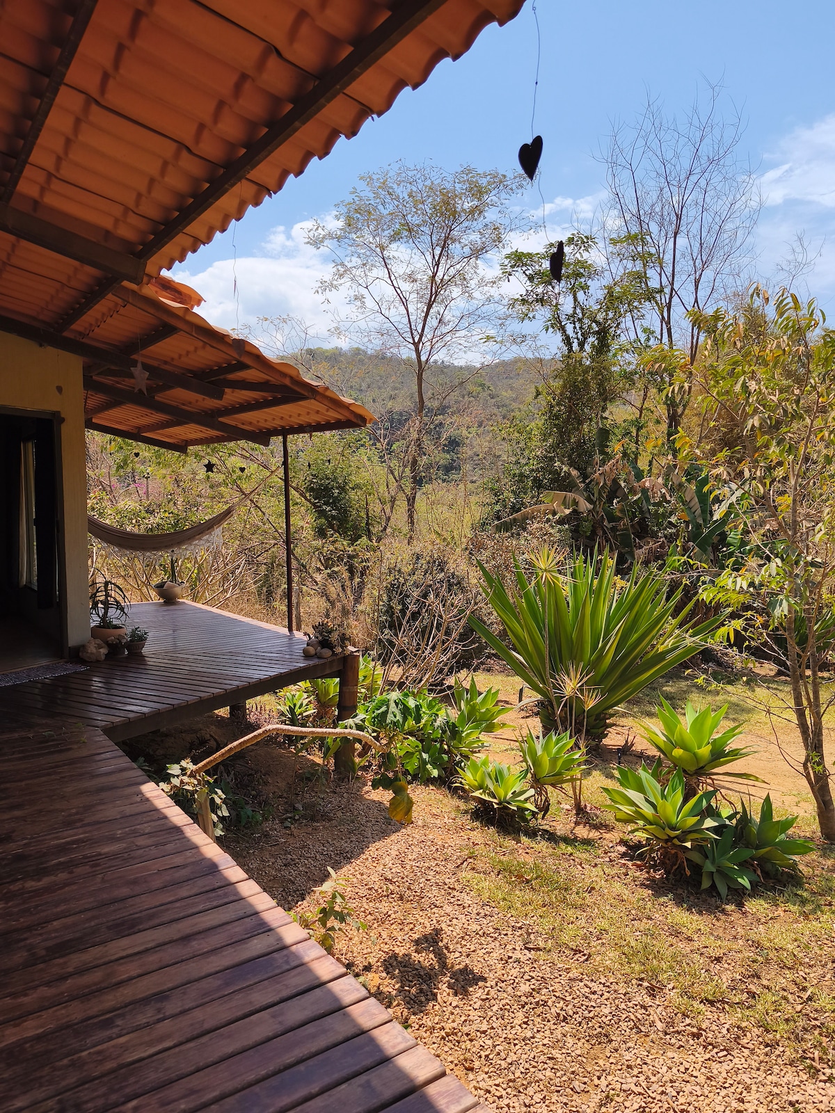 Chalet i hjertet af Chapada dos Veadeiros. Frodig udsigt over naturen og solnedgangen. Vilde dyr ses ofte: tukaner, araer, krybdyr, papegøjer og forskellige andre fugle. Chalet i schweizisk stil, queensize seng og balkon med hængekøje på hemsen, i stueetagen 2 enkeltsenge/sofa, badeværelse og udstyret køkken. Vindeltrappe, der kræver forsigtighed, er ikke egnet til personer med nedsat mobilitet. Børn under 10 år er ikke tilladt. Overhold venligst reglerne for kæledyr og LÆS OM WIFI.