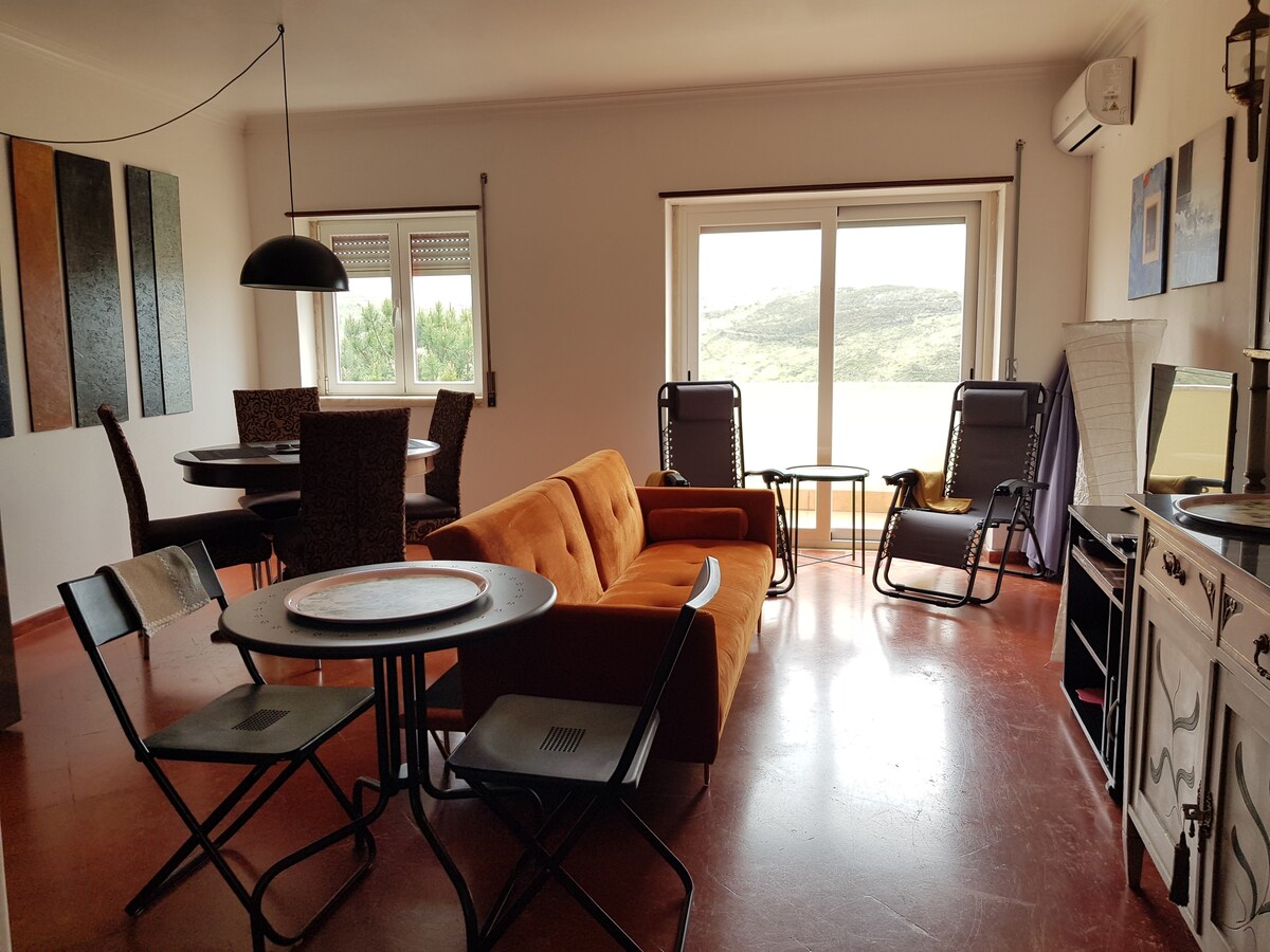Sød og charmerende lejlighed med 2 soveværelser + 1 sofa i stuen til 2 personer; 1 badeværelse, køkken og stue/spisestue. En hyggelig balkon udstyret med 3 stole/bord og 1 netstol mod stranden er et vidunderligt sted at få dine måltider, læse og slappe af. Køkkenet er fuldt møbleret og udstyret. Lejligheden ligger i Magoito, en lille landsby tæt på havet ca. 5 minutter fra stranden, 5 km fra den unikke og historiske by Sintra og ca. 30 km fra Lissabon lufthavn.