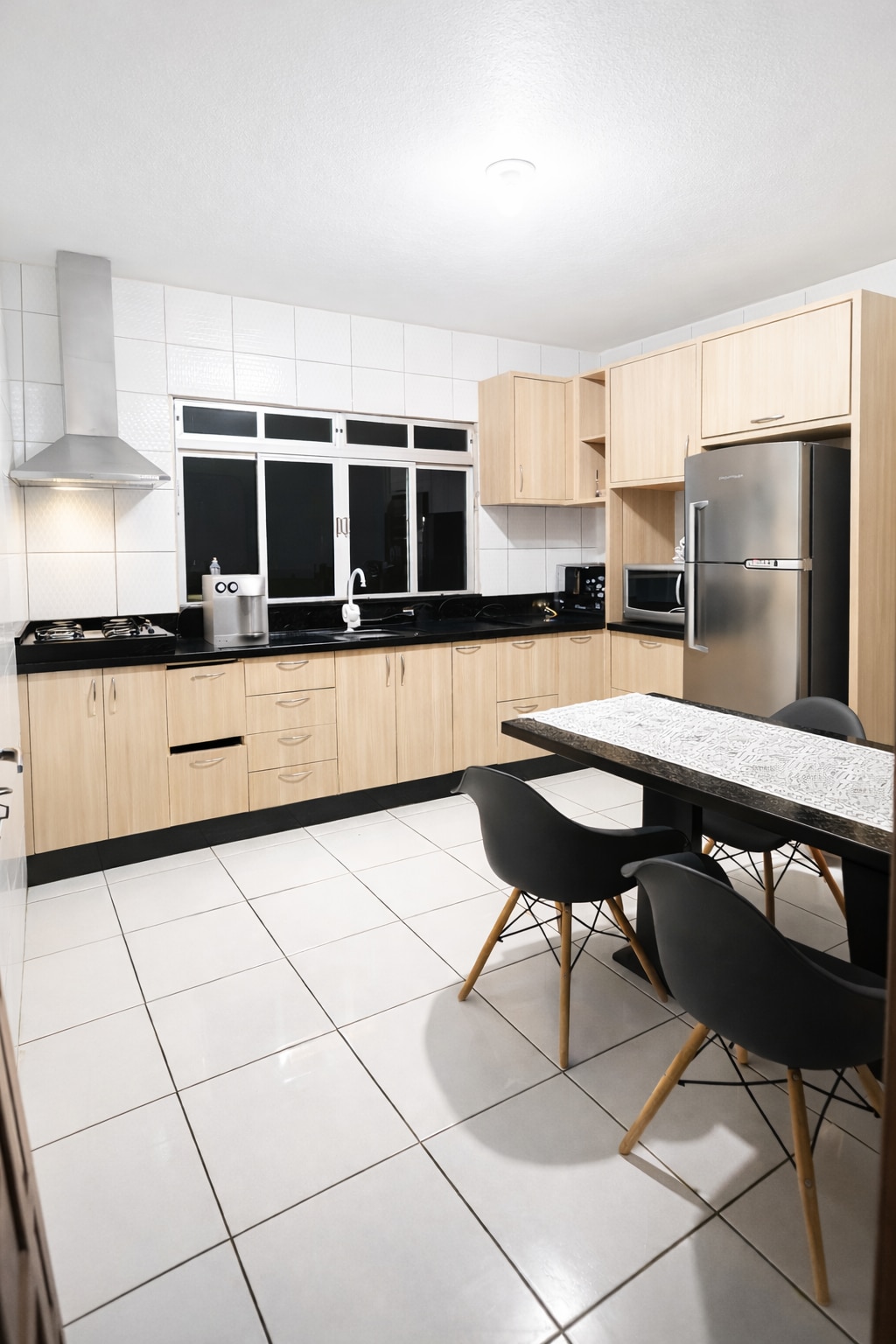 Velkommen til dit midlertidige hjem! Vores hus ligger i et roligt og stille kvarter. Ideel til familier, forretningsrejsende eller dem, der leder efter et hyggeligt sted at slappe af 1,4 km fra Continente indkøbscenter 1,8 km fra Intelbras 1,0 km fra hospitalet 5,5 km fra Arena Opus 4,3 km fra kysten Wi-Fi Smart TV Garage Bemærk: Lastbiler kan ikke komme gennem porten Komplet køkken 1. soveværelse: dobbeltseng med aircondition 2. soveværelse: dobbeltseng, enkeltseng og loftsventilator