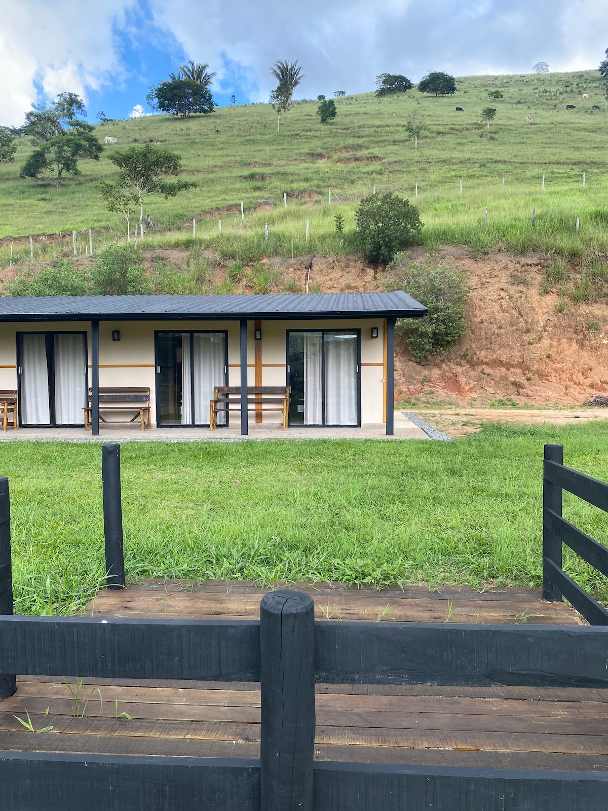 Bjerghytte med smuk udsigt, ideel til at hvile og nyde naturen. Byd kæledyr velkommen. Chaleten ligger på Tocas-ranchen, adskilt fra hovedhuset. We are located in the brejal, about 2:30hs from Rio de Janeiro and 40 min from Itaipava. Dejligt klima, køligt om natten, ideel til at tænde pejsen. Chalé har en suite, et dobbeltværelse og et enkelt soveværelse, alle på anden sal i chaleten. Første sal har en stue, der er integreret med køkkenet, toilet, balkon og swimmingpool