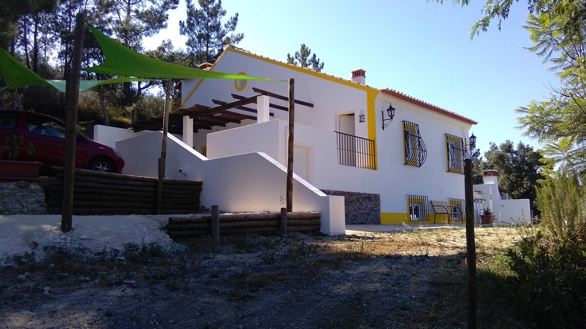 Med vores hyggelige træhytte vil du føle dig som i et trætopshus. Du kan nyde den rolige atmosfære fra terrassen eller i vores udendørs lounge, hvor vi serverer en lækker morgenmad (lokale/økologiske produkter af høj kvalitet). Alt her er lavet af os, med kærlighed og 99,9% naturlige materialer, så du kan nyde fred og ro. Vi er i en rolig, men alligevel meget bekvem beliggenhed, 20 minutter fra de smukke strande i Vilanova de Milfontes.