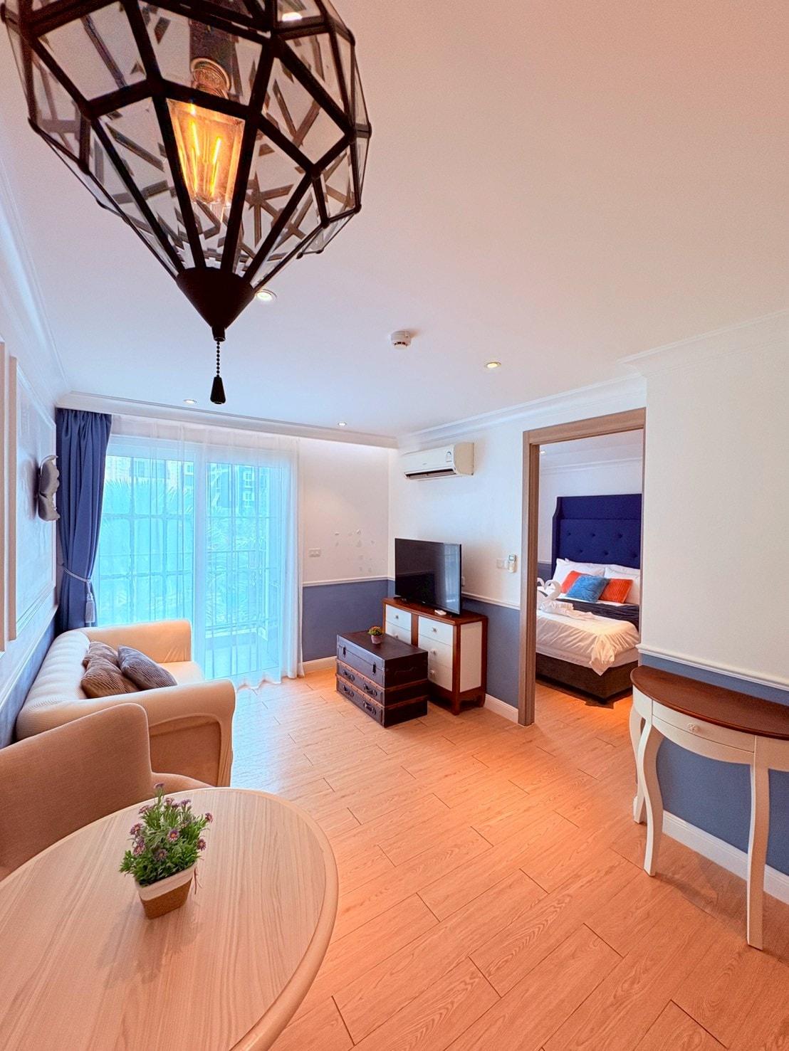 Tag på ferie i denne stilfulde lejlighed med 3 soveværelser (100 kvm) på Veranda Residence Pattaya, der ligger direkte på Na Jomtien Beach. Nyd betagende havudsigt fra din private balkon i denne luksuriøse enhed ved stranden, der er problemfrit forbundet med det 5-stjernede Veranda Resort, der administreres af Sofitel Hotel & Resort Group. Du er kun en kort gåtur fra Pattayas mest berømte fiskerestauranter, herunder Pupen og Uncle Sawai Seafood – ideel til autentisk spisning ved havet.