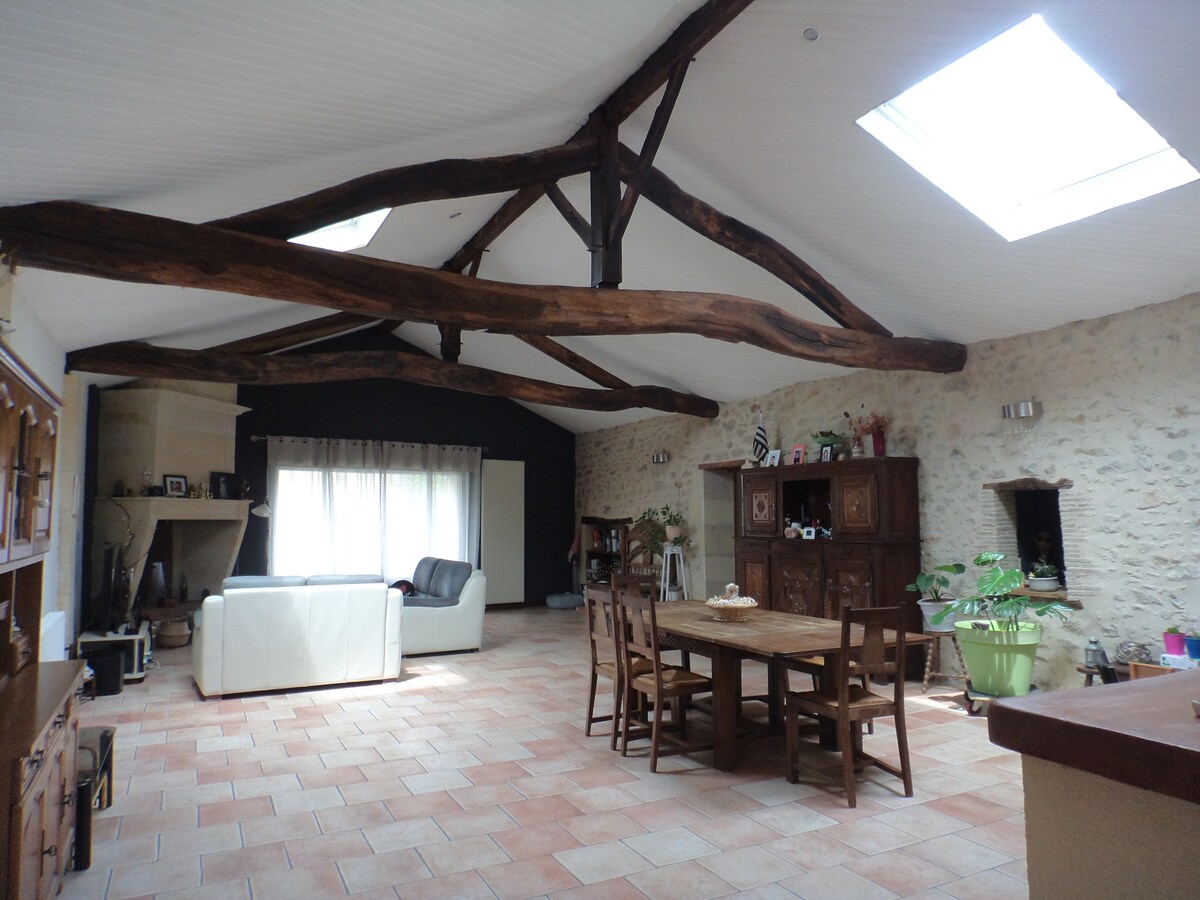 Our cosy studio is located in a converted barn on the border between the Charente Maritime and Gironde departments. For those seeking peace and quiet and nature lovers, our studio at Au Chêne Vert is the ideal place and also a good base for a walking or cycling trip, a visit to a (flea) market, wine or cognac producer or various other excursions.