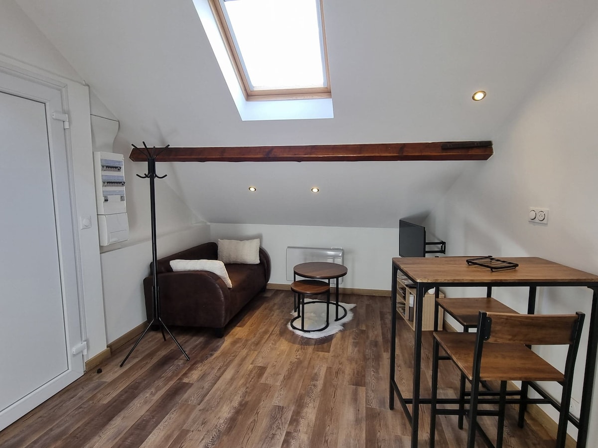 ⚠️ Attention, jardin actuellement en travaux (fév à juin 2026) ! Endroit agréable pour les amoureux de la nature et de la simplicité. La maisonnette se situe dans notre jardin, accessible par le chemin de dalles et est composée de deux pièce. Le séjour est équipé d'un espace cuisine avec table à manger et 2 chaises, ainsi qu'un coin canapé et télé. Puis, il y a la chambre aménagée d'un lit 2 places, d'une penderie et d'un bureau, avec une salle de douche. (Logement non fumeur)