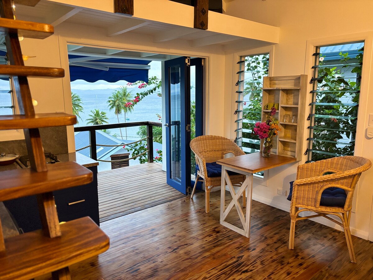 Vågn op til en vidstrakt havudsigt i denne luksusvilla kun for voksne ved stranden i Savusavu. Perfekt til par og bryllupsrejser med privat sandstrand, snorkling, kajaksejlads og nem adgang til det verdensberømte Rainbow Reef. Nyd en rummelig suite med kingsize-dobbeltseng, tropisk udendørsområde og daglig morgenmad lavet med lokale ingredienser. Hjemmelavede frokoster (25 FJ$) og middage tilberedt af kokken (55 FJ$) er tilgængelige. Drevet af en Superhost og elsket for sit privatliv, romantik og autentiske fijianske varme.