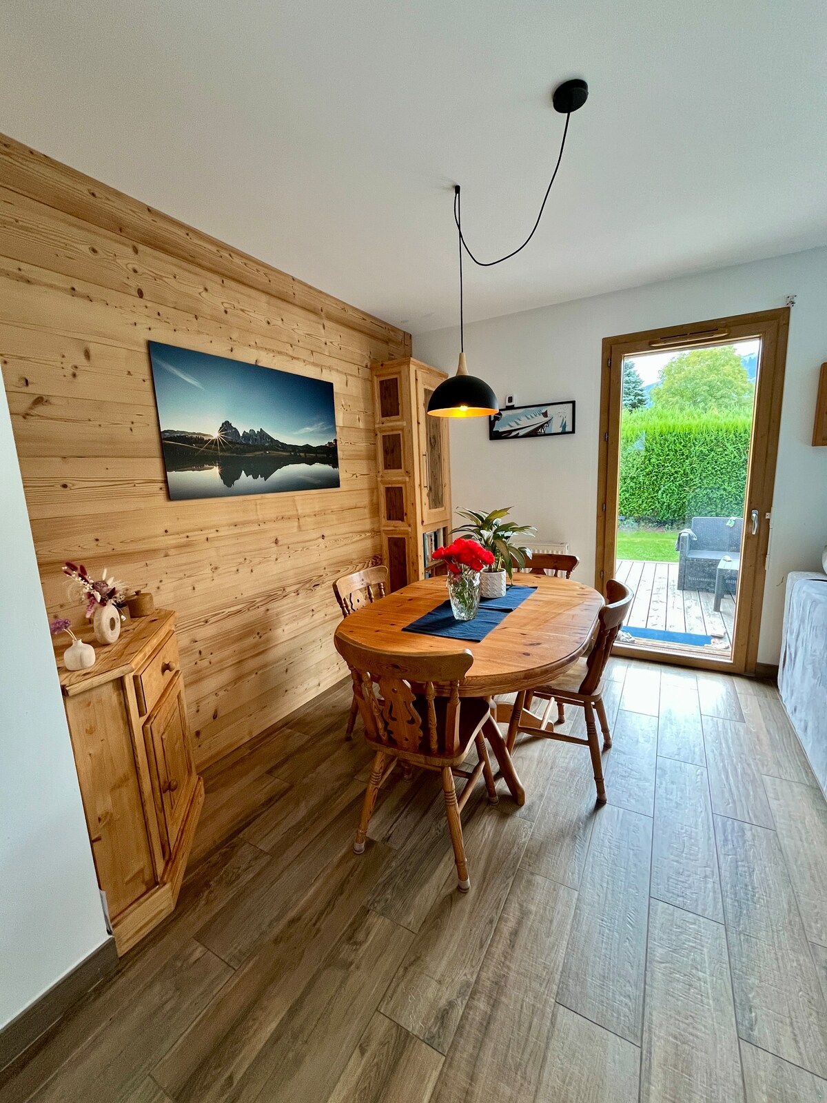 Det var i grønne omgivelser, at hytten blev bygget i 2024. Denne rummelige lille chalet på 35 m2 giver dig ro og et storslået landskab ved foden af bjergene i Chamonix-dalen. Den er ideel til et par eller med børn og nyder godt af elegante og moderne faciliteter (videoprojektor, wi-fi, plancha, udstyret køkken, en smuk solnedgangsterrasse med storslået udsigt over vores bjerge og en have).