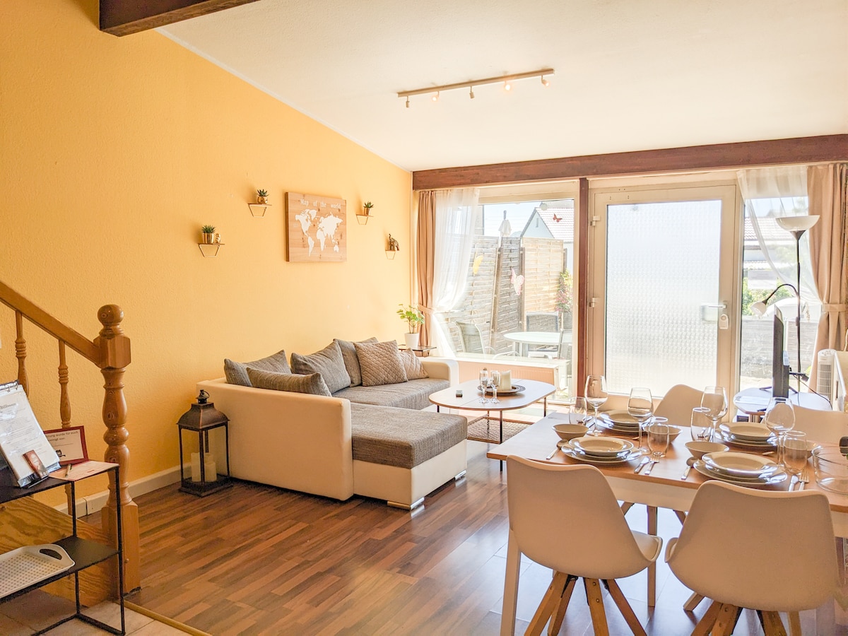 Ferielejligheden på 74 m² er en maisonette-lejlighed med gang, stue, 2 soveværelser, køkken, badeværelse og stor balkon. Rygning kun muligt på balkonen eller udenfor (rygefri lejlighed). Udenfor er der en stor have med pool/poolhus (kan bruges sæsonbestemt) og bål- og grillplads. Garage og carport til rådighed. Wi-Fi, indkøbsmuligheder i byen, brug af pejsestuen efter aftale.