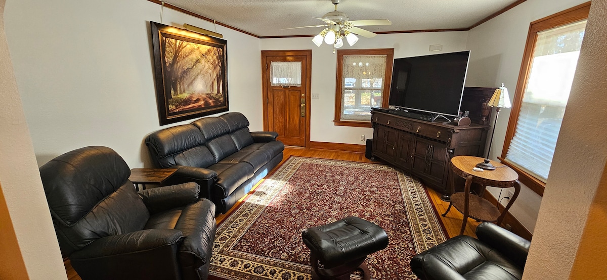 Dejlig ombygget kælderlejlighed beliggende i et roligt kvarter tæt på I-35. Nyrenoveret lejlighed har et fuldt køkken med køleskab, komfur, mikrobølgeovn, opvaskemaskine, kaffemaskine og basale ingredienser og basalt køkkentøj. Nyd en elektrisk pejs i stuen. Det store soveværelse har en komfortabel queensize-dobbeltseng og et stort walk-in-closet. Der er en dobbeltseng i familierummet. Der er en pak-og-spil tilgængelig. Nyd poolen/bordtennisbordet og tv. Tæt på offentlig golfbane.