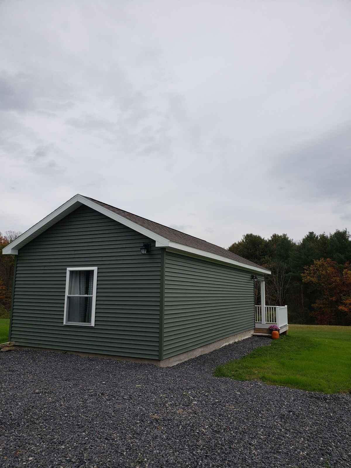 Et lille hus med hjemmets bekvemmeligheder. Etværelses trappefri svit med fantastiske solnedgange og følelsen af at være midt i skoven, mens du stadig er tæt nok på at nyde en rimelig køretur til nogle af Finger Lakes bedste vandrestier, mad, vingårde og andre destinationer. Hvis du kommer om vinteren, vil du ønske, at du havde en firhjulstrækker, hvis der er sne på vejene, men en halv mil ned ad bakken, og du er på den statslige motorvej til Finger Lakes-regionen.