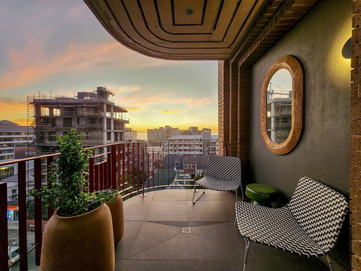 Du er velkommen til at bo i vores helt nye, moderne og smagfuldt indrettede lejlighed med, helt ærligt, den ultimative beliggenhed og udsigt, du kan drømme om, når du besøger Cape Town. Synes du, billederne er smukke om dagen? Se solnedgangene og de fortryllende lys i byen og ved havnefronten om aftenen. Kun 3 etager nedenunder giver pooldækket og det udendørs fitnessområde på 27. etage dig perfekt 360 graders ikonisk udsigt. Træd ud på den summende Bree Street ... WOW! *Ingen strømafbrydelser i denne bygning.