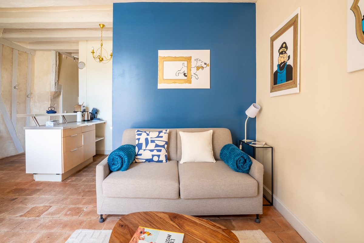 Charmerende atelier i en fuldt renoveret bygning i hjertet af Saint-Aignan, nær Beauval Zoo Velkommen til vores hyggelige og komfortable atelier, ideelt beliggende i Saint-Aignan-sur-Cher – kun få minutter fra den berømte ZooParc de Beauval og de fantastiske slotte i Loire-dalen. Førsteklasses beliggenhed: Lige i det historiske centrum af Saint-Aignan, ved foden af den smukke stiftskirke og slottet, og inden for gåafstand fra butikker, restauranter og bredden af Cher-floden.