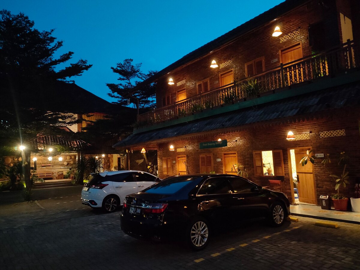Den angivne pris er for et værelse per nat Vores pensionat i javanesisk stil tilbyder en hyggelig atmosfære omgivet af grønne områder, tæt på centrum og 5 minutter til hvileområdet🍃 Hvert værelse har et privat badeværelse og en kingsize-dobbeltseng, der passer til to voksne. Små familier med et barn er tilladt. Ekstra seng til rådighed mod ekstra betaling Salatigas naturlige kølige luft gør rummet behageligt uden aircondition. Gæster kan slappe af i haven, medbringe kæledyr og nyde atmosfæren