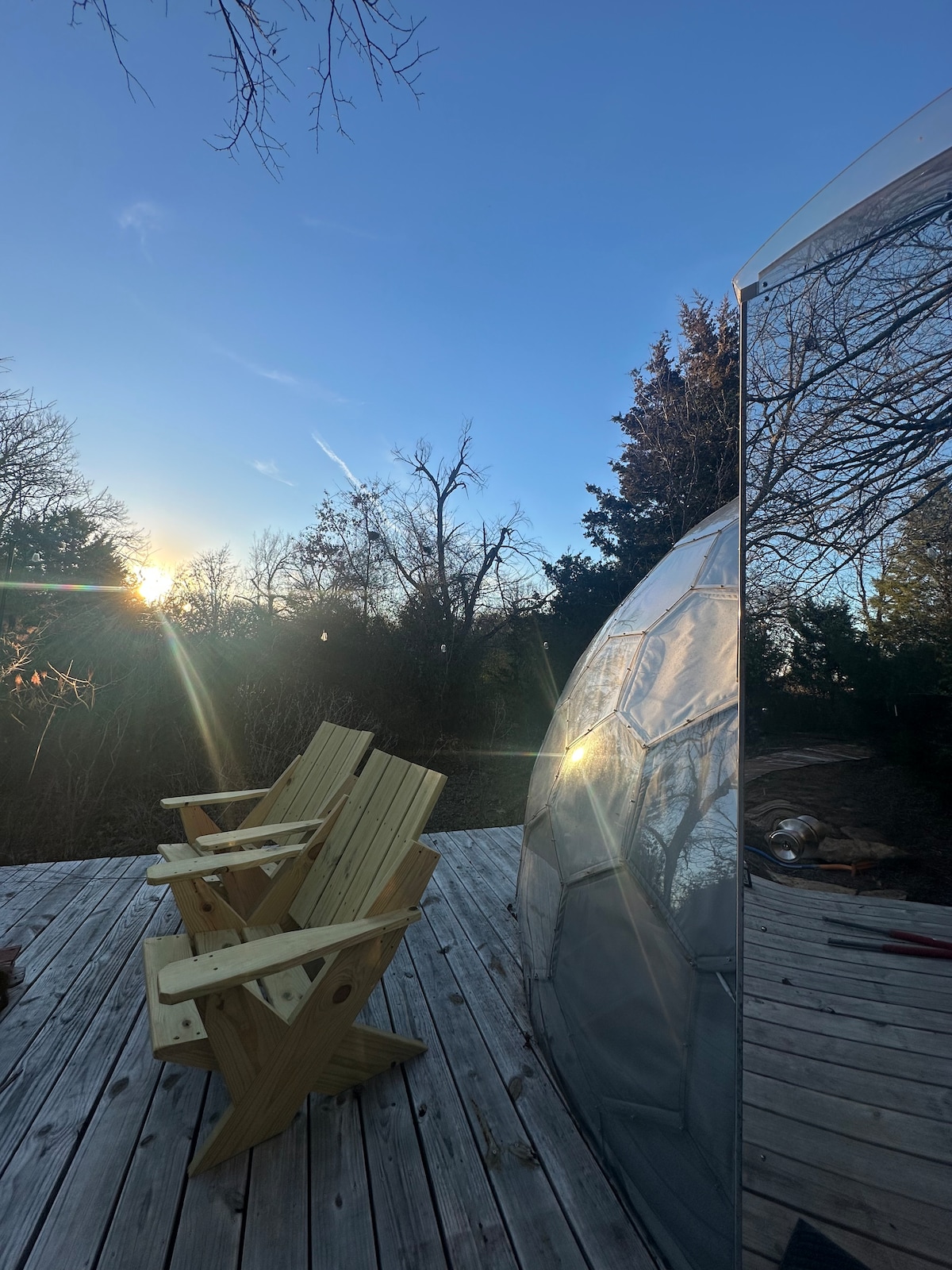 Disconnect from the busy day to day, and reconnect with each other in fresh air, tucked away into the woods, under the stars! Our clear domes have the ability to be as fully visually immersed in your surroundings, or pull the privacy curtain shut as you desire. A community style bath house hosts three full bathrooms, a full kitchen, and a common space with two overhead doors for extra versatility next to the pool + hot tub!