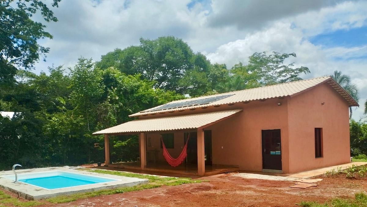 Med et eksklusivt areal på ca. 1000 m2, omgivet af grønne områder. Slap af i dette område, der ligger 15 minutter fra Goiânia. Det er let tilgængeligt, og du får privatliv, ro midt i naturen og en masse komfort. Ingredienser, der gør Apoena-hytten til en unik oplevelse tæt på Goiás' hovedstad, for dem, der elsker at undslippe støj og nyde komforten ved en pejs (indendørs og udendørs), kvalitets-wifi (starlink), badekar, spa og projektor, så du kan se dine film og serier i stor stil.