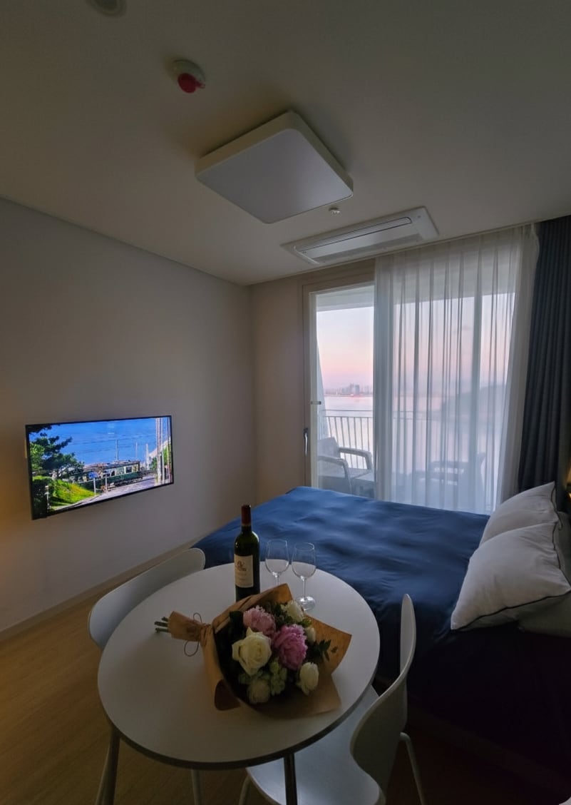 Det er en rummelig lejlighed med havudsigt, hvor du kan slappe af i en vidunderlig atmosfære Det er et højtliggende opholdsrum med havudsigt 😄Åbningstider Check-in: 15:00 - 21:00 Check ud: 11:00 😄Værelse - Varmt og rent sengetøj i hotelkvalitet - Bluetooth-højttalere og stemningslys - TV og mørklægning gardiner OTT (Netflix, Disney, YouTube osv. Brug af personlig konto) 😄Køkken - El-kedel, induktionskogeplade, køleskab, vaskemaskine, mikrobølgeovn - vinglas, ølglas, sojuglas, kaffekopper - Salt, peber, madolie - Enkle køkkenredskaber, køkkenværktøj, knive og sakse 😄Faciliteter - Hårtørrer - Shampoo, balsam, badesæbe, håndsæbe, engangstænderbørstesæt, tandpasta, sæbe, skumrens 😄Vores værelse kan rumme op til 4 personer. Standard er 2 personer, og der opkræves 15.000 KRW pr. ekstra person. (For ekstra personer tilbydes topper/tæpper/puder) Der kan opkræves ekstra gebyrer for beskadigelse af😄 sengetøj eller møbler.