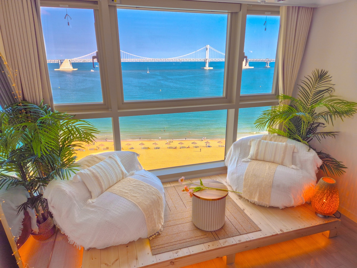 ✨ Tilføj et strejf af følelse til Gwangalli – velkommen til The GwangAn ♥ Bo i et hyggeligt og stilfuldt feriehus beliggende lige foran Gwangalli Beach. Vågn op til havudsigt, og nyd den unikke stemning i Busans elskede kystnære nabolag. Licenseret Airbnb i Sydkorea Fremragende 📍 beliggenhed • Kun få skridt fra Gwangalli Beach • Omgivet af trendy caféer og lokale restauranter • 5 minutters gang til Millak The Market • 10 minutters gang til Minrak Waterside Park