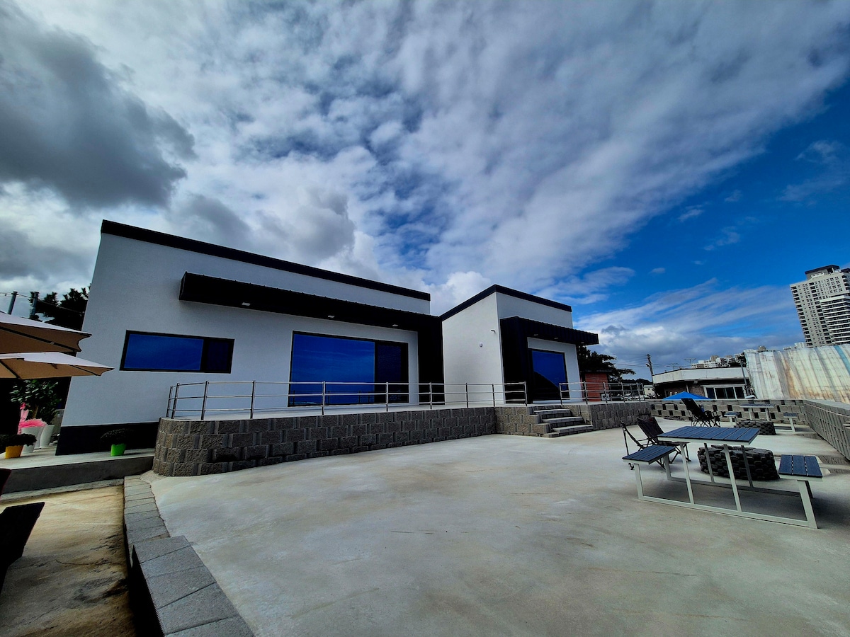[Beskrivelse af boligen] Vores bolig er en følelsesmæssig bolig og en af de få boliger i Goseong-gun, hvor grupper kan bo, Vi tilbyder et sted til hvile og healing for dem, der er trætte af bylivet. Vores bolig, der er forberedt til at få dig til at føle, som om du er kommet til en ferievilla i Sydøstasien, ligger 5 minutter i bil fra Ayajin Beach, og du kan bruge både første og anden sal, som en stor privat bolig, der kun er forberedt til et hold. Der er en privat have omgivet af høje hække uden for boligen, hvilket maksimerer privatlivets fred, og der er også en bålplads, hvor du kan lave bål og grille. Derudover er der installeret overvågningskameraer uden for boligen for at sikre gæsternes sikkerhed og forhindre biltyveri, så du kan bo her med ro i sindet. (Retning mod parkeringspladsen) Indenfor er der sengetøj i hotelkvalitet, et stort køkken, hvor du kan lave mad, bestik, et spisebord og meget mere. Der er også en række underholdningsfaciliteter, såsom Disney+TV, PlayStation 5, spillemaskiner, en projektor og en karaokemaskine, så du ikke kommer til at kede dig under dit ophold.