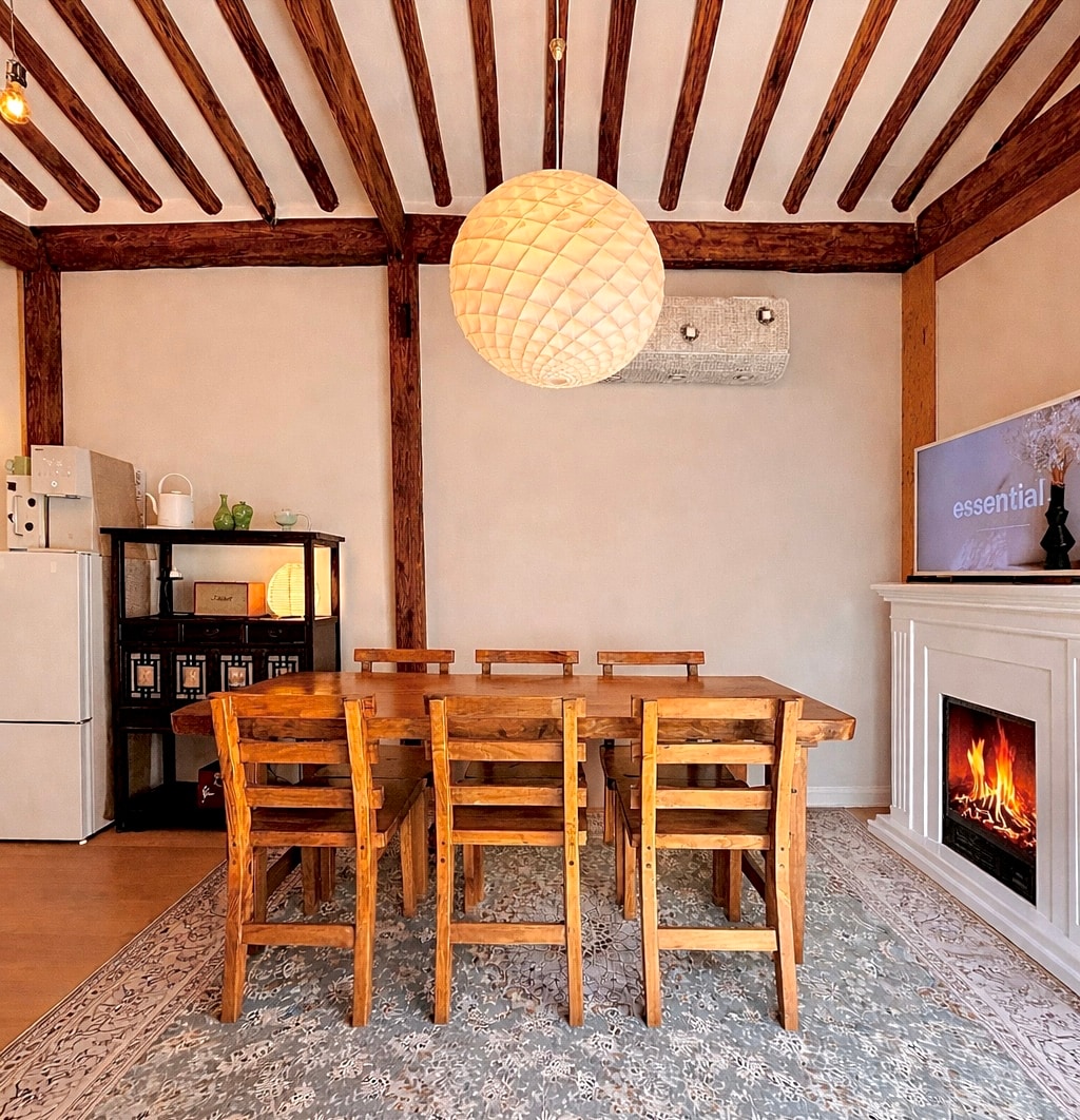 Hele 1. og 2. sal, til 2-8 personer, 2 soveværelser (2 queensize senge), 2 rummelige stuer (2 queensize sovesofaer), 2), 2 badeværelser, 1 køkken (udstyret med køkkenredskaber), stort valnøddetræsbord (4m) til 12 personer, brætspil, Nintendo Switch-spil Køkken - elkogeplade, mikrobølgeovn, induktion, ismaskine, kaffemaskine (espressomaskine), køkkenredskaber og krydderier, service, vinglas, køleskab Det smukkeste sted at bo i Seouls centrum med paladset som baggrund. Du kan nyde healing med udsigt over det hemmelige baggårdsområde i Changdeokgung Palace, og det er tæt på både undergrundsstationer og offentlig transport, så det er meget bekvemt for rejsende. Administratoren bor 10 minutter væk, så du kan altid få hjælp, når du har brug for det. ** Der er ingen parkeringsplads, men en offentlig parkeringsplads ligger 5 minutters gang væk.