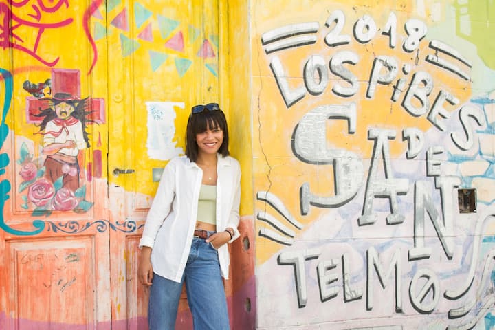 Rundtur i det historiske centrum af Buenos Aires. Billeder i San Telmo 35 redigerede billeder, der tager en time at tage, leveres 48 timer efter sessionen.