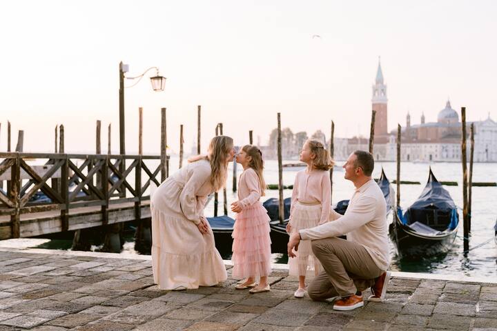 Fejr din rejse til Venedig med en afslappet familiefotosession. Vi udforsker charmerende gyder, broer og kanaler, mens jeg indfanger ægte smil, latter og kærlighed. Ingen stive stillinger – bare ægte øjeblikke, der afspejler jeres bånd. Du får tidløse billeder, som du kan værdsætte for evigt.